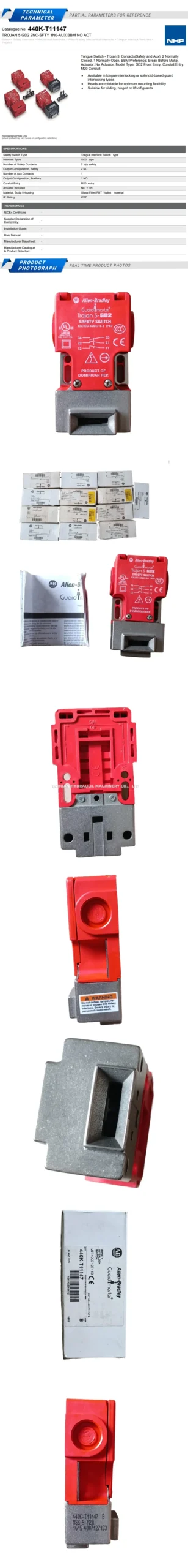 The AB 440K-T11147, manufactured by Allen-Bradley, is a Guardmaster Trojan T15 tongue-operated safety interlock switch. It is designed for machine guarding applications to ensure that machinery cannot operate unless its protective guard is securely closed, thereby safeguarding personnel from potential hazards. This switch utilizes a GD2-style actuator (actuator to be ordered separately) and offers a reliable solution for monitoring the position of sliding, hinged, or lift-off guards in various industrial environments. Its robust construction and dependable performance make it a key component in achieving safety compliance for automated systems.
