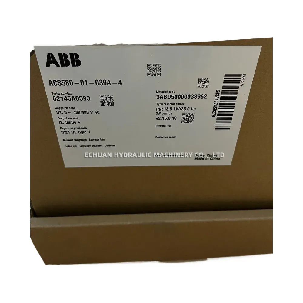 The ABB ACS580-01-039A-4 is a general-purpose wall-mounted drive designed for simplicity, reliability, and energy efficiency across a wide range of industrial applications. Part of the all-compatible ACS580 series, this drive simplifies process control with its intuitive features, including an assistant control panel with a primary settings menu and built-in help functions. It comes standard with essential features like a built-in brake chopper and an EMC filter, reducing the need for external components and saving installation space. The ACS580-01-039A-4 is engineered to control various motors, including induction and permanent magnet motors, making it a versatile solution for pumps, fans, conveyors, and mixers.