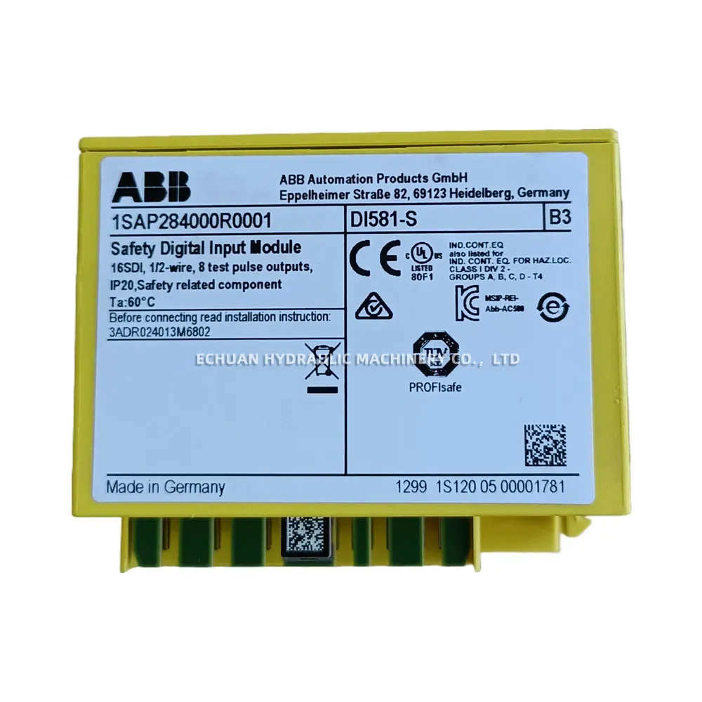 The ABB DI581-S is a high-integrity safety digital input module designed for the AC500-S safety PLC system. It is engineered to monitor safety-related signals from devices such as emergency stop buttons, light curtains, and safety switches. This module features 8 channels that can be configured for 1- or 2-channel sensor evaluation, providing flexibility for various safety applications. With compliance up to SIL3 (IEC 61508) and PL e (ISO 13849-1), the DI581-S ensures reliable and certified performance in critical industrial environments, enhancing machine and personnel safety through its robust design and comprehensive diagnostic capabilities.