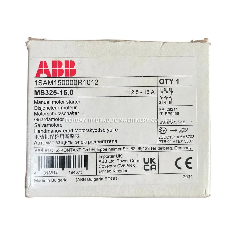 The ABB MS325-16.0 is a high-performance manual motor starter designed to provide reliable protection for electric motors. This compact and efficient device combines motor control and protection against short-circuits, overload, and phase failures into a single unit. With an adjustable thermal overload setting range of 12.5 to 16.0 A, it offers precise protection tailored to your specific motor application. The MS325-16.0 features a high short-circuit breaking capacity, ensuring enhanced safety and operational reliability in demanding industrial environments. Its user-friendly design includes a clear rotary handle for ON/OFF/TRIP indication and is suitable for both three-phase and single-phase applications, making it a versatile solution for motor protection.