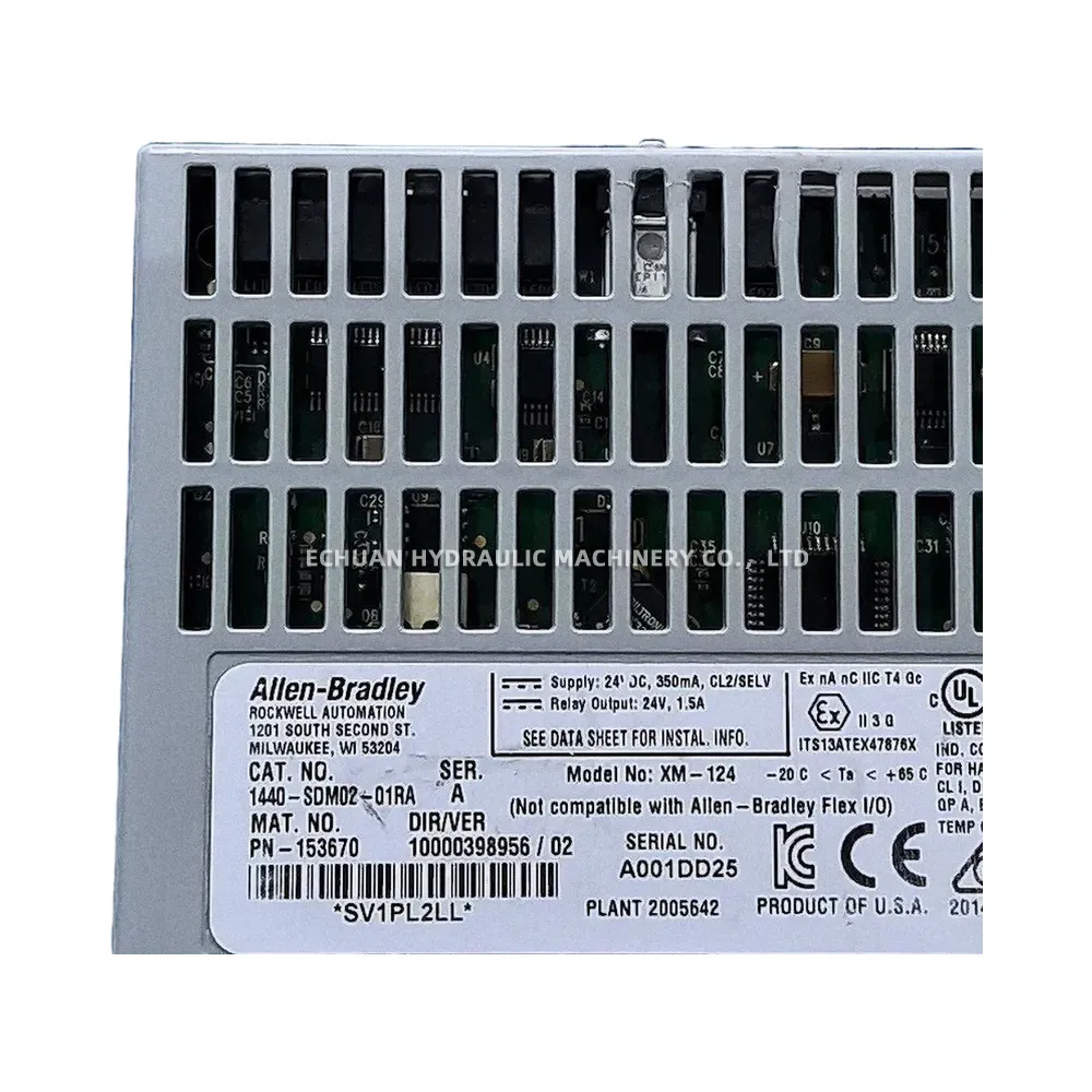 The Allen-Bradley 1440-SDM02-01RA is a Dynamic Measurement Module from the XM-144 series, designed for advanced machinery condition monitoring and protection. This module provides precise, real-time data acquisition for dynamic signals such as vibration and acceleration, making it ideal for monitoring critical rotating machinery like turbines, compressors, and motors. It integrates seamlessly into the Rockwell Automation Integrated Architecture via an EtherNet/IP network, allowing for predictive maintenance strategies that help reduce unplanned downtime and improve overall plant efficiency. Its robust design ensures reliable performance in demanding industrial environments.