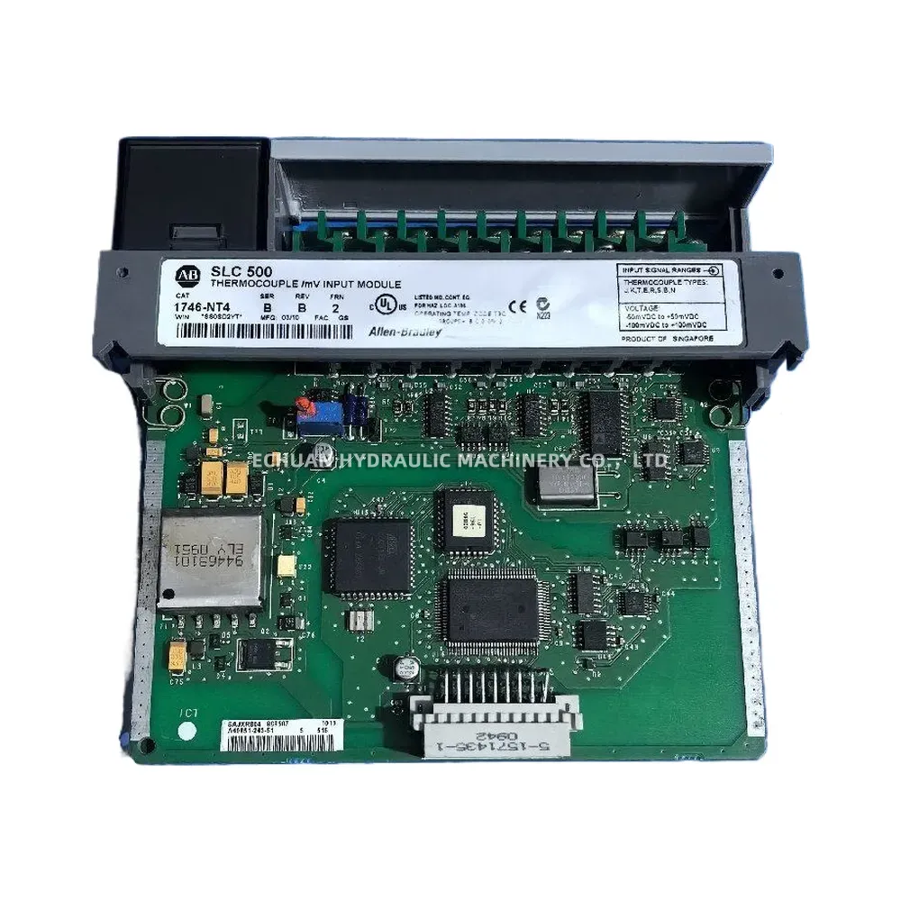 The Allen-Bradley 1746-NT4 is a high-performance Thermocouple and Millivolt Analog Input Module designed for the SLC 500 series programmable logic controllers. This module provides a reliable interface for connecting up to four thermocouple or millivolt-level analog sensors, making it ideal for precise temperature monitoring and control applications in various industrial environments. It features on-board cold-junction compensation for thermocouples, high-resolution 16-bit conversion, and selectable input filtering to ensure accurate and stable readings. The 1746-NT4 is easily configured within the SLC 500 programming software and can be installed in any available I/O slot of a 1746 chassis.