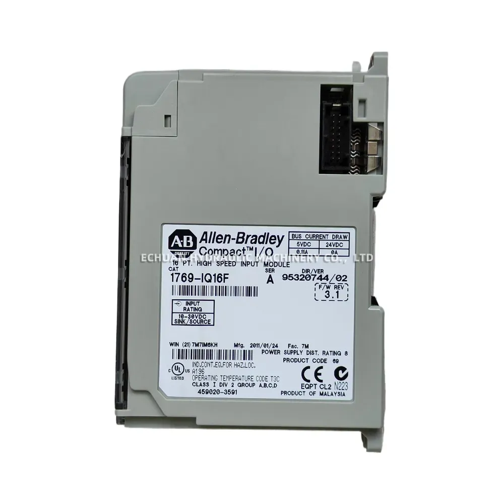 The Allen-Bradley 1769-IQ16F is a fast 16-point, 24V DC sinking/sourcing input module for CompactLogix systems, engineered for high-speed industrial control applications.
