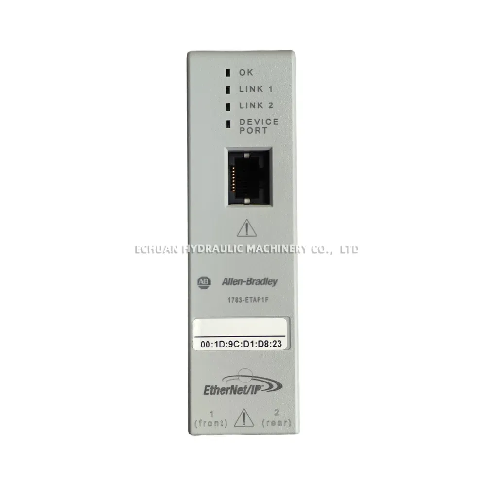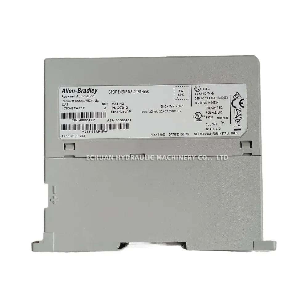 The Allen-Bradley 1783-ETAP1F is a Stratix 2000 EtherNet/IP network tap, designed for robust industrial environments. This device allows for temporary connection of a monitoring or programming tool to an EtherNet/IP network without disrupting network traffic. It features two 10/100 Mbps copper RJ45 ports to pass through network data and one 100 Mbps fiber SFP (Small Form-factor Pluggable) port for the monitoring connection. The 1783-ETAP1F is an unmanaged tap, making it a simple plug-and-play solution for network diagnostics, troubleshooting, and data logging on the factory floor. Its compact, DIN-rail mountable design and wide operating temperature range ensure reliable performance in demanding industrial applications.
