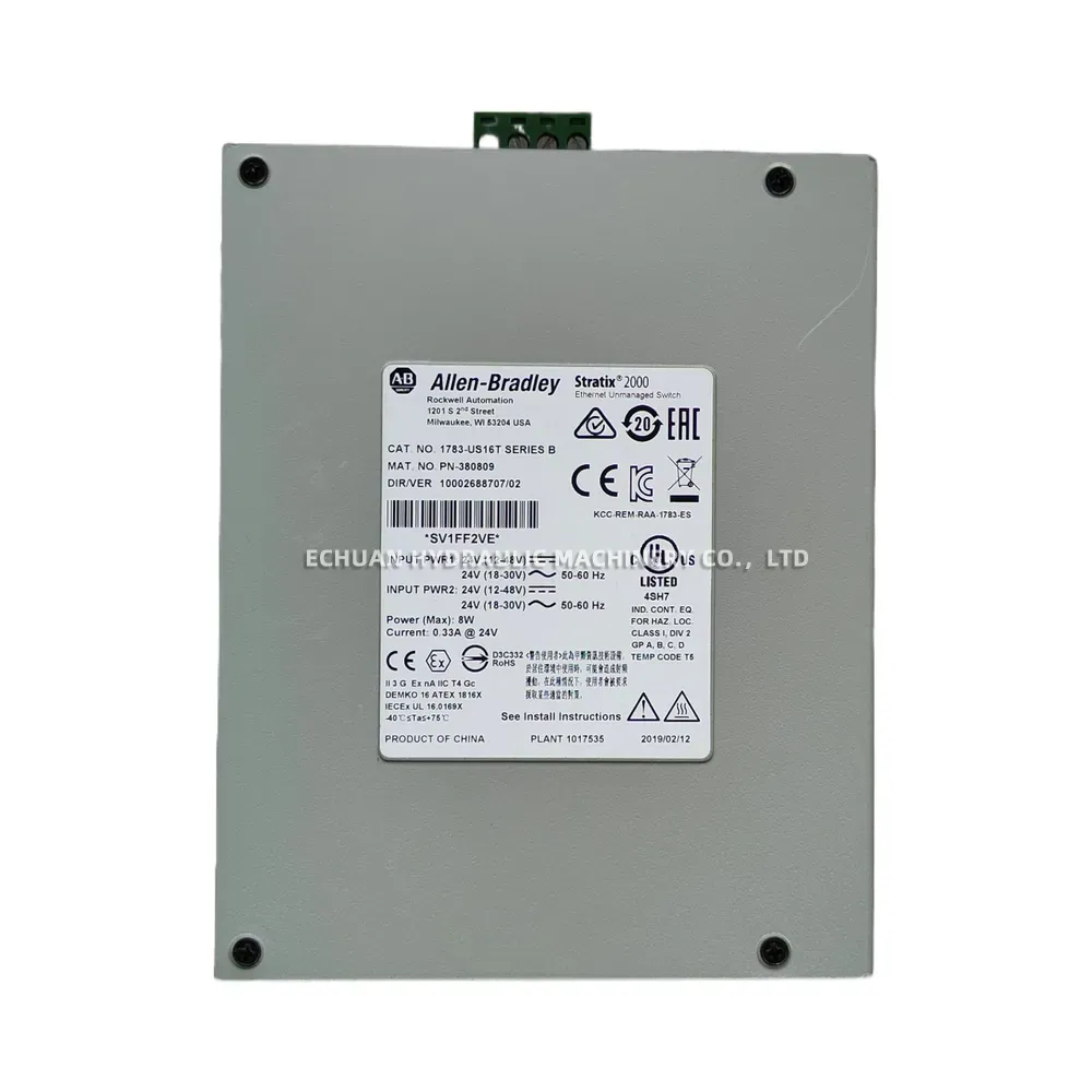The Allen-Bradley 1783-US16T is a Stratix 2000 series unmanaged Ethernet switch, designed for robust performance in demanding industrial environments. Featuring 16 fast Ethernet copper ports, this switch provides a simple and cost-effective solution for expanding your network on the plant floor. Its plug-and-play functionality requires no user configuration, allowing for quick and easy installation. Built to withstand industrial conditions, the 1783-US16T is ideal for connecting PLCs, HMIs, and other automation devices, ensuring reliable communication for your critical applications.