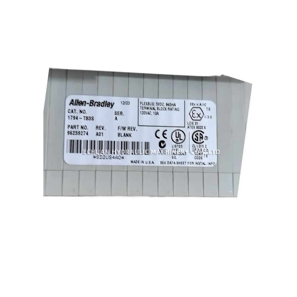 The Allen-Bradley 1794-TBN is a FLEX I/O Terminal Base Unit, a fundamental component for building modular and distributed I/O systems. This base unit provides the connection points for field-side wiring and connects an I/O module to the FLEX I/O backplane. Featuring robust screw-clamp terminals, it ensures secure and reliable connections for various input and output devices. The 1794-TBN mounts easily on a standard DIN rail, simplifying installation, wiring, and maintenance within a control cabinet. It is designed to work with a wide range of FLEX I/O modules, offering flexibility and scalability for diverse industrial automation applications.