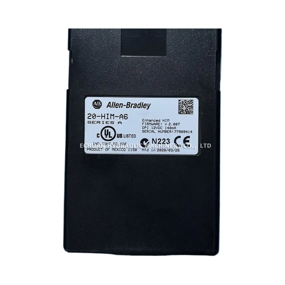 The Allen-Bradley 20-HIM-A6 is a Human Interface Module (HIM) designed for use with the PowerFlex 7-Class series of AC drives, including the PowerFlex 70, 700, 700S, 753, and 755. This module provides a user-friendly interface for local programming, monitoring, and controlling the drive. It features a full numeric keypad and a backlit LCD screen, ensuring clear visibility and easy data entry in various industrial environments. The 20-HIM-A6 supports the convenient CopyCat function, allowing users to save and transfer complete sets of drive parameters, which significantly speeds up commissioning and replacement processes. It can be mounted directly on the drive, used as a handheld device, or remotely mounted on a panel for flexible access and control.