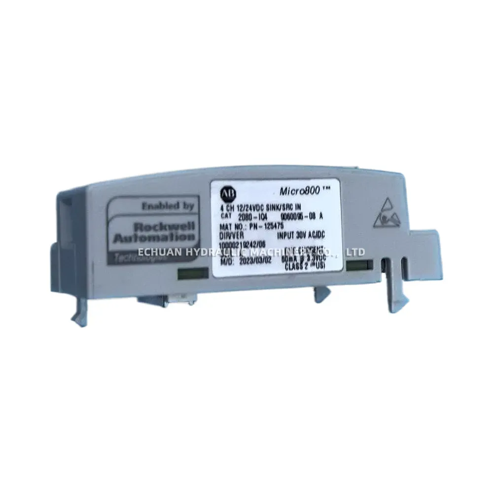 Expand your Micro800 PLC with the Allen-Bradley 2080-IQ4, a 4-point 24V DC sink/source digital input plug-in module. Ideal for compact and cost-effective I/O expansion.