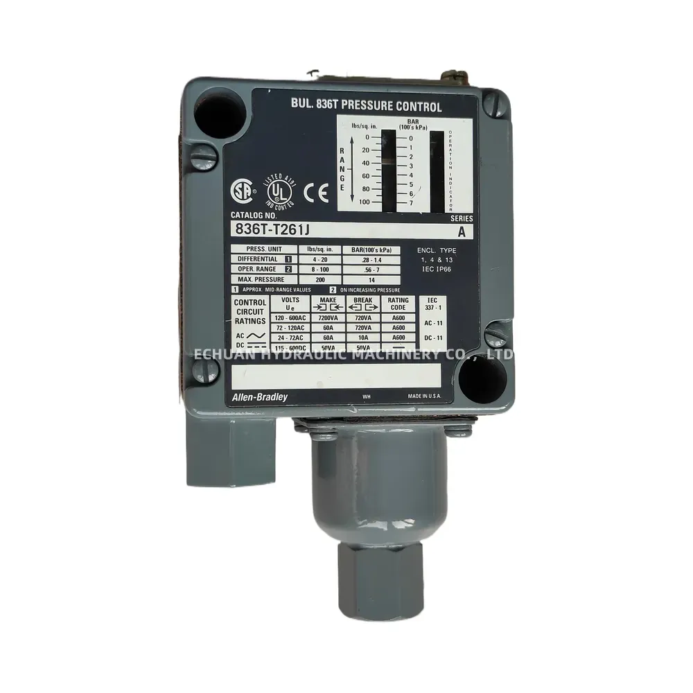 Discover the Allen-Bradley 836T-T261J, a reliable Style T pressure control switch with a 20-600 PSI range and SPDT contacts. Housed in a NEMA 4/13 enclosure, it’s ideal for industrial pressure monitoring.
