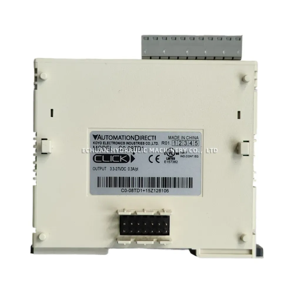 The Automation Direct C0-08TD1 is a versatile 8-point DC sinking discrete output module designed for the CLICK PLC series. This module seamlessly expands the capabilities of your programmable logic controller, allowing you to control a variety of external devices such as relays, pilot lights, and other small DC loads. With its compact design and easy installation, the C0-08TD1 provides a cost-effective and reliable solution for adding discrete output functionality to your automation and control systems. It features two isolated commons, with four output points per common, offering enhanced flexibility in wiring and application design.