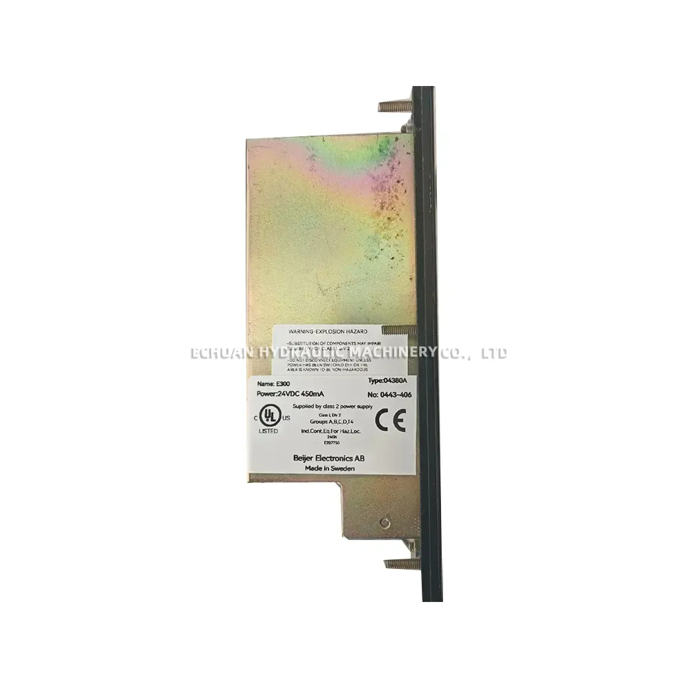 Purchase the Beijer Electronics E300 (Type: 04380A), a rugged industrial HMI operator panel with a monochrome LCD, keypad, and RS-232/RS-422 communication. Certified for Class I, Div 2 hazardous locations.