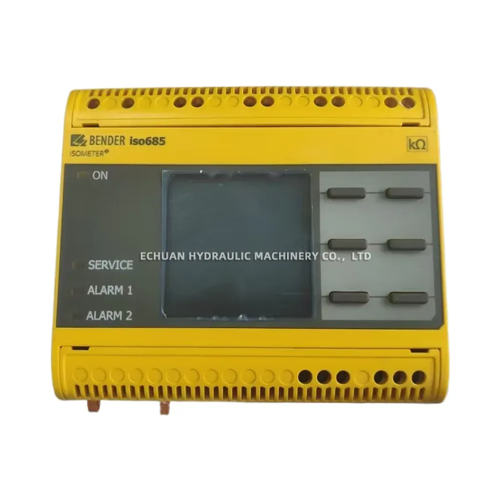 Bender ISO685 ground fault detector for continuous insulation monitoring in unearthed AC, AC/DC, and DC IT systems. Ensures maximum electrical safety and system availability.