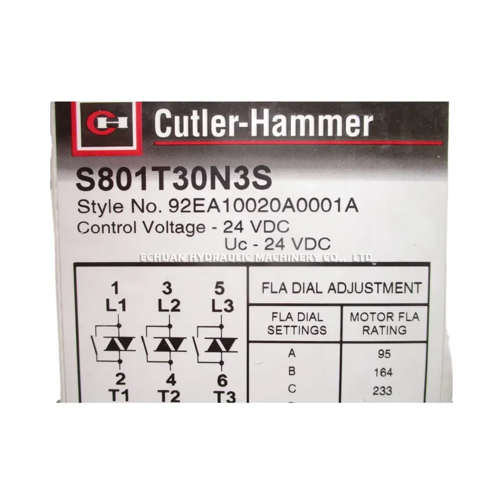 Shop the Cutler-Hammer S801T30N3S solid state soft starter with adjustable motor FLA ratings up to 304A and a 24 VDC control voltage. An ideal solution for reducing mechanical stress and inrush current in three-phase motor applications.