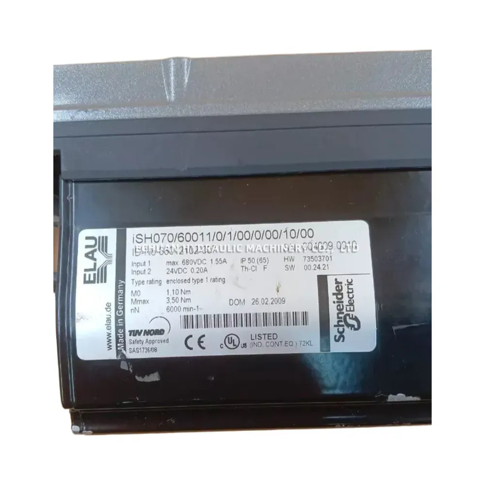 The ELAU iSH070/60011/0/1/00/0/00/10/00 is a high-performance intelligent servo motor from the iSH series, manufactured by Schneider Electric. Engineered in Germany, this motor is designed for demanding industrial automation and control applications. It combines a compact design with powerful performance, delivering a rated speed of 6000 min-1 and a maximum torque of 3.50 Nm. With its integrated drive and cULus listing for industrial control equipment, the iSH070 provides a reliable and efficient solution for precision motion control systems.