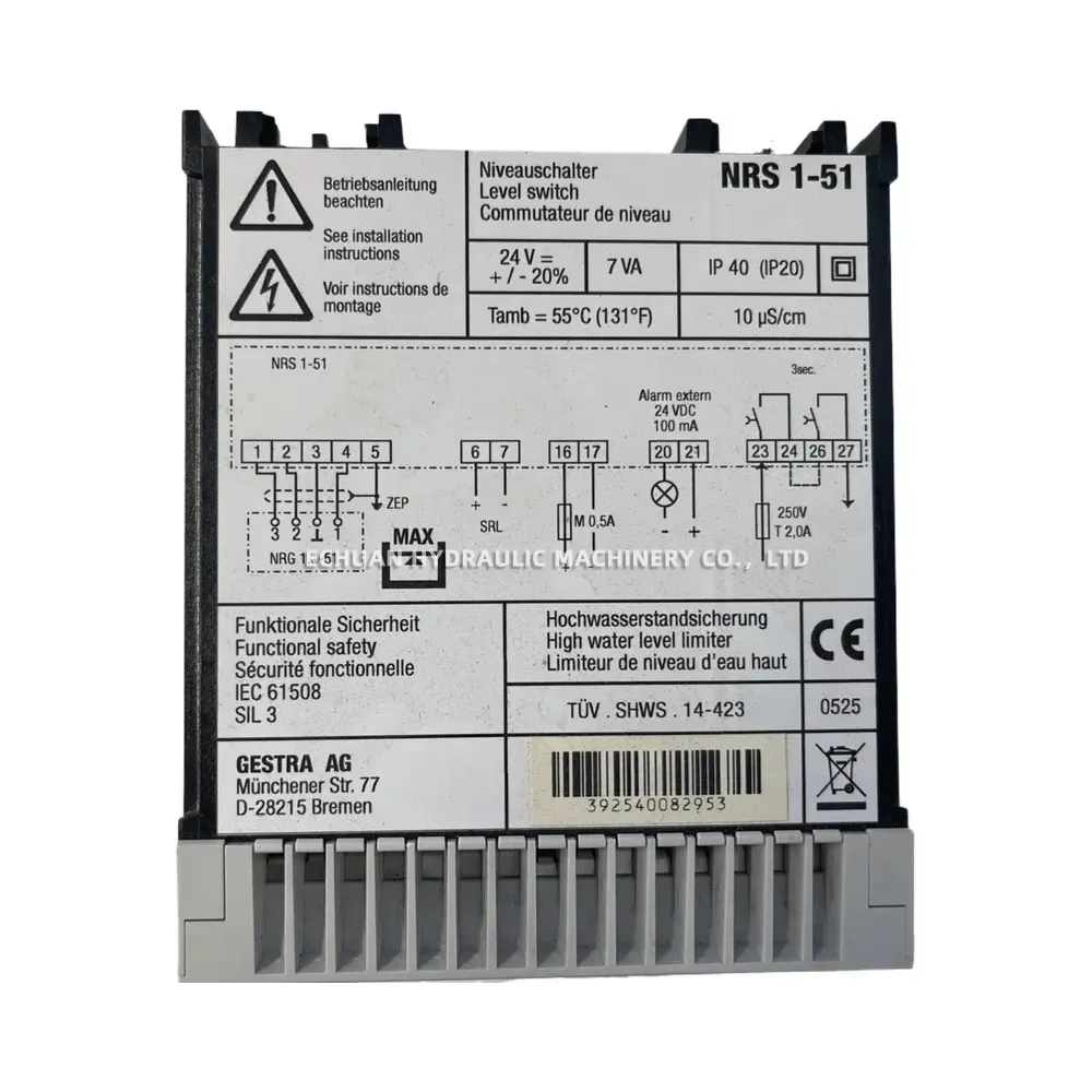 The Flowserve GESTRA NRS 1-51 is a high-integrity level switch and high water level limiter designed for critical industrial applications. Engineered for maximum reliability, it monitors conductive liquid levels to prevent overfilling in tanks, vessels, and steam boilers. With a certified Functional Safety rating of SIL 3 according to IEC 61508, the NRS 1-51 provides a dependable solution for safety-instrumented systems. It operates on a 24 V DC supply and is designed for use with GESTRA NRG 1…-51 level probes, featuring an integrated test function and clear status indicators on the front panel for straightforward operation and maintenance.