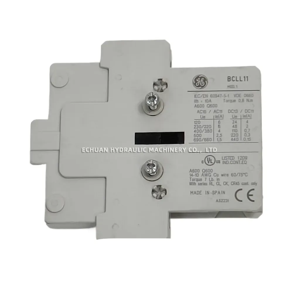 Purchase the GE BCLL11 front-mount auxiliary contact block, featuring a 1NO + 1NC contact configuration. This component is designed for seamless integration with GE CL series contactors, perfect for industrial control and signaling applications.