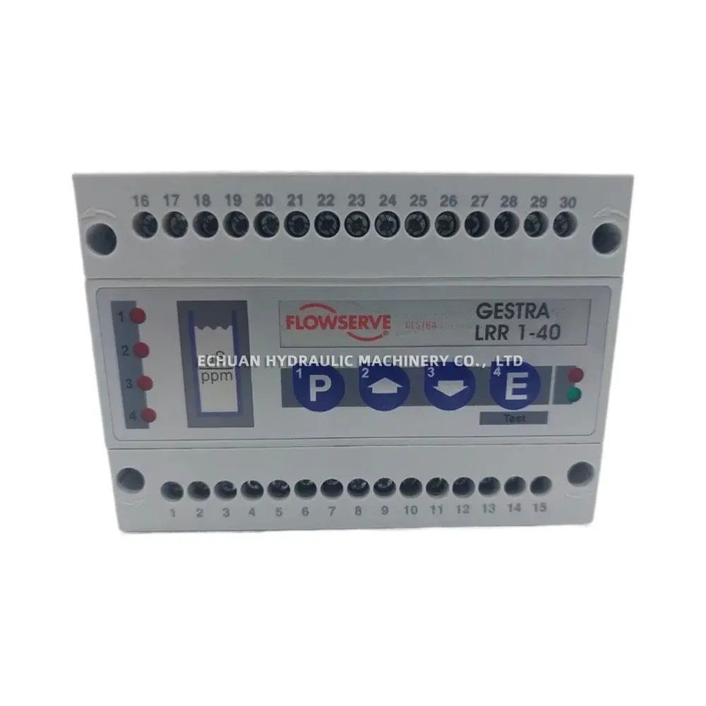 Gestra LRR 1-40 industrial conductivity controller for TDS monitoring and automatic boiler blowdown control. Features a digital display, limit relay, and DIN rail mounting for enhanced water quality management.