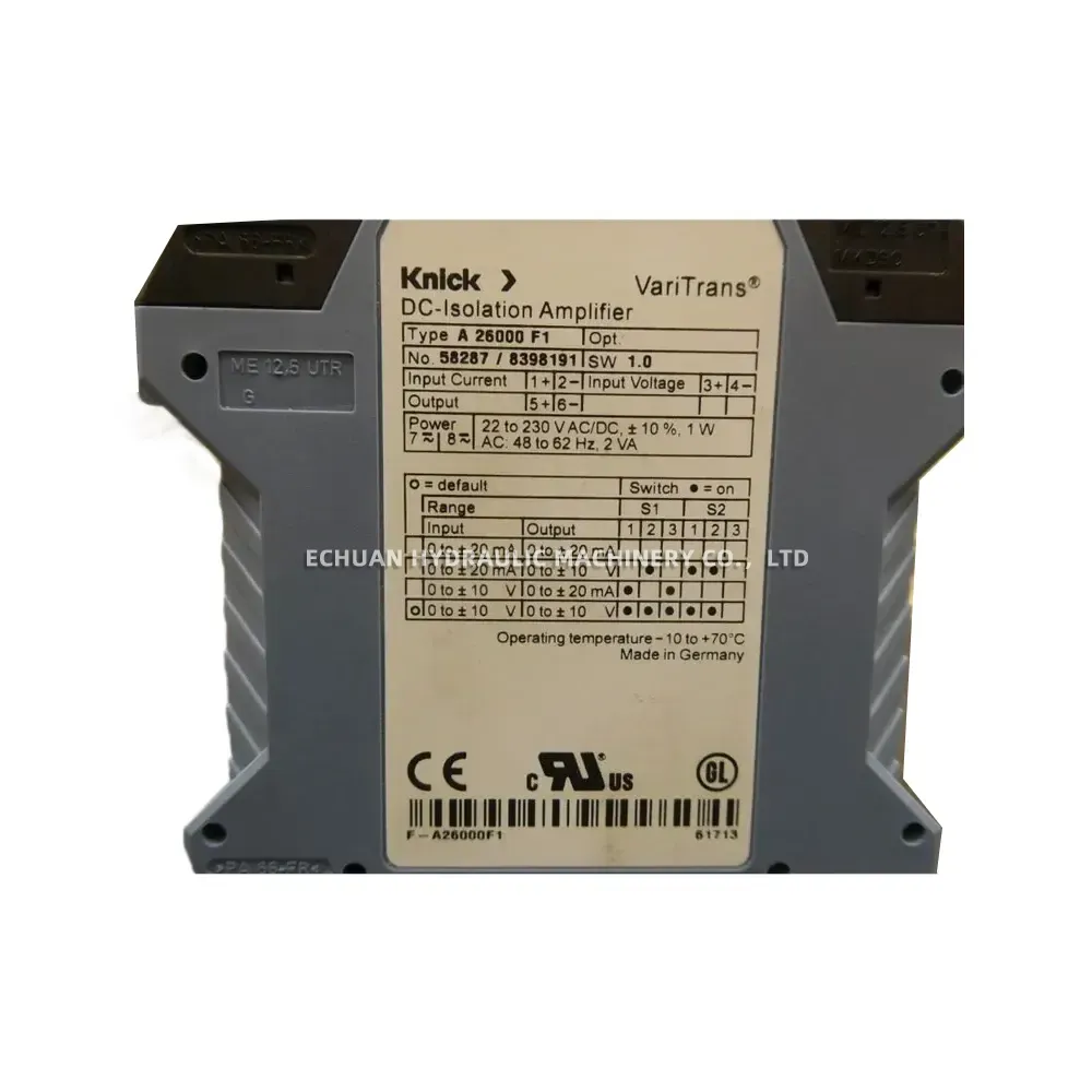 The Knick A 26000 F1 is a versatile and reliable universal DC isolation amplifier from the VariTrans® series, designed for high-precision galvanic isolation of standard DC signals. It offers exceptional flexibility with calibrated, switch-selectable input and output ranges for both current (0 to ±20 mA) and voltage (0 to ±10 V). A key feature is its broad-range power supply, accepting 22 to 230 V AC/DC, which simplifies integration into various industrial systems. Housed in a compact 12.5 mm module, this German-engineered amplifier ensures dependable signal transmission and protection for sensitive control equipment in demanding environments.