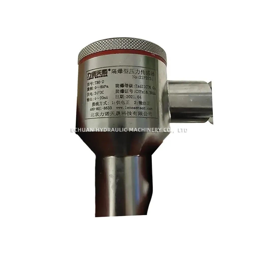 Discover the LENO SENSOR T30-D, a robust flameproof pressure transmitter with an ExdIICT6 Gb rating. Ideal for hazardous areas, it offers a 0-8MPa range, 24VDC power, and a 4-20mA output for reliable industrial process control.