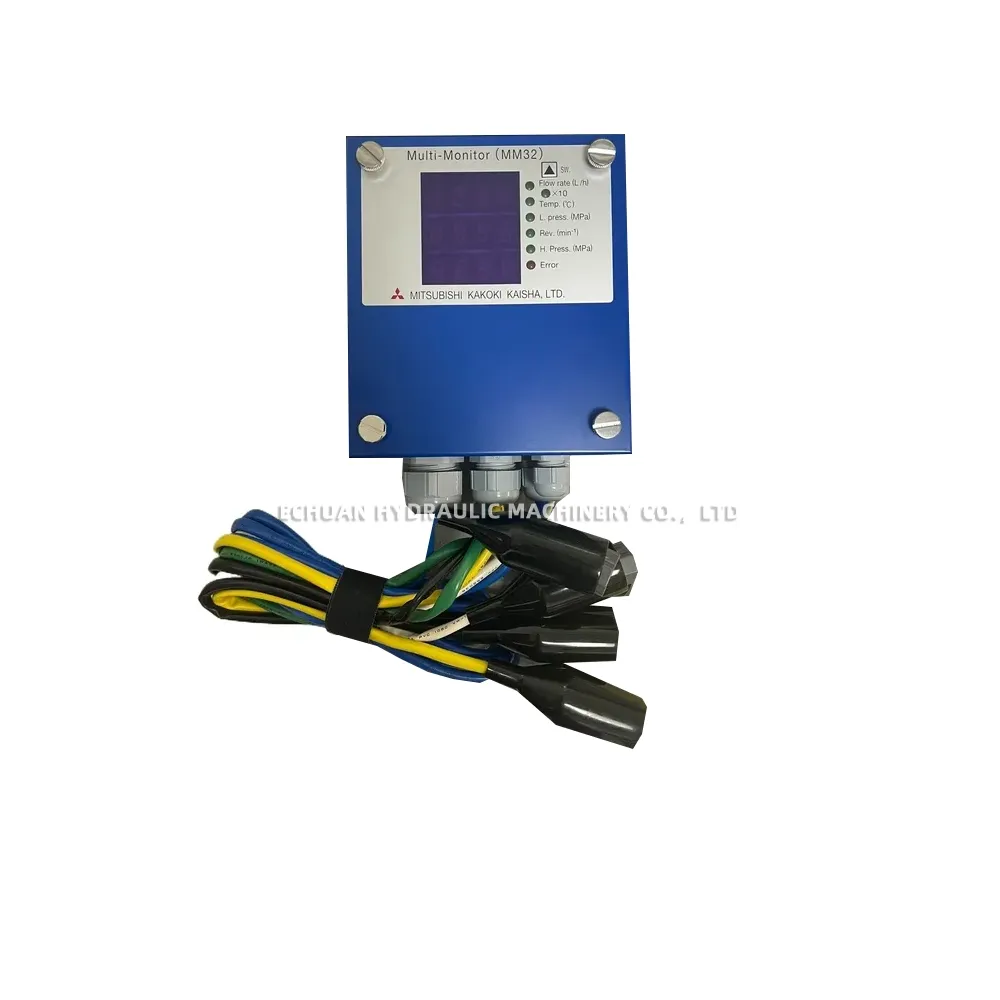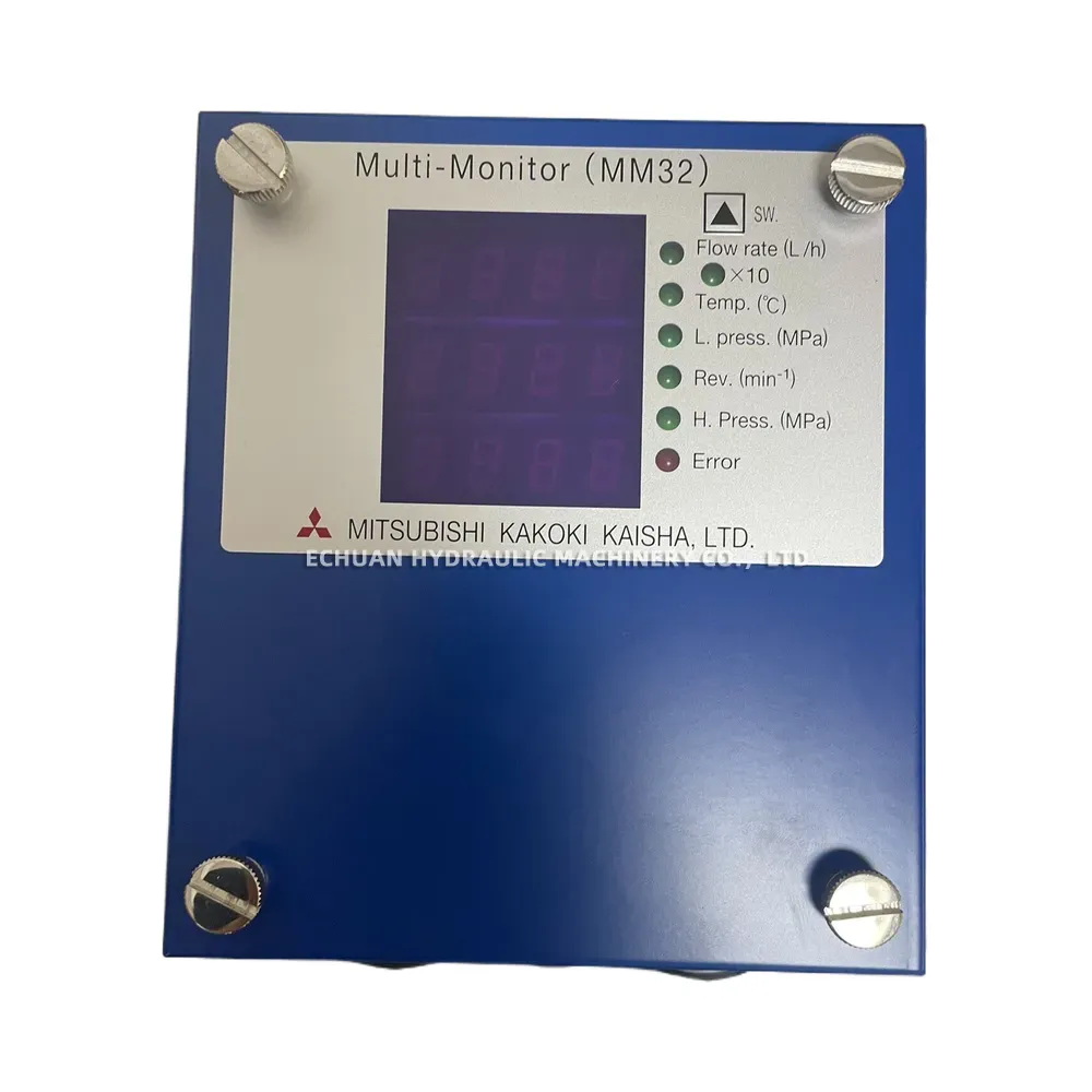 The Mitsubishi Kakoki Kaisha MM32 is a robust and reliable multi-parameter monitoring unit designed for demanding industrial environments. This compact device provides real-time, at-a-glance monitoring of critical operational parameters, including flow rate, temperature, low and high pressure, and revolution speed. Featuring a clear digital display and dedicated status LEDs for each measurement, the MM32 allows operators to quickly assess system health and identify potential issues. An integrated error light provides immediate alerts for out-of-spec conditions, enhancing operational safety and minimizing downtime. The unit is built for easy integration, equipped with durable cable glands and supplied with the necessary sensor cables and probes for a complete monitoring solution.