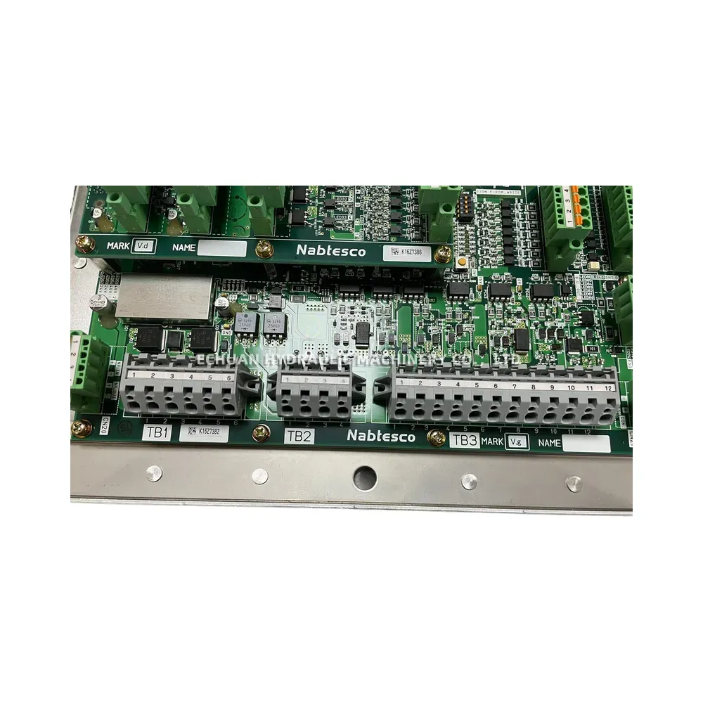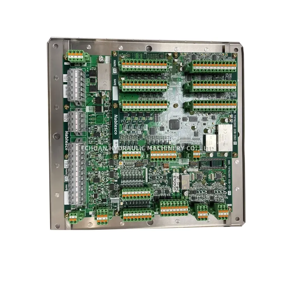 The Nabtesco CCB-202-01 is a specialized Cylinder Controller Card Assembly engineered for high-performance industrial applications. Mounted on a durable metal backplate, this PCB is designed to provide precise control over hydraulic or pneumatic cylinder operations within automated systems. It features multiple screw terminal blocks (TB1, TB2, TB3, etc.) for secure and reliable I/O connections, ensuring seamless integration into complex machinery. The board is equipped with integrated COSEL power modules, known for their efficiency and stability, guaranteeing consistent performance in demanding industrial environments. As a genuine Nabtesco component, the CCB-202-01 is an essential part for maintaining and repairing automation equipment that relies on accurate cylinder actuation.