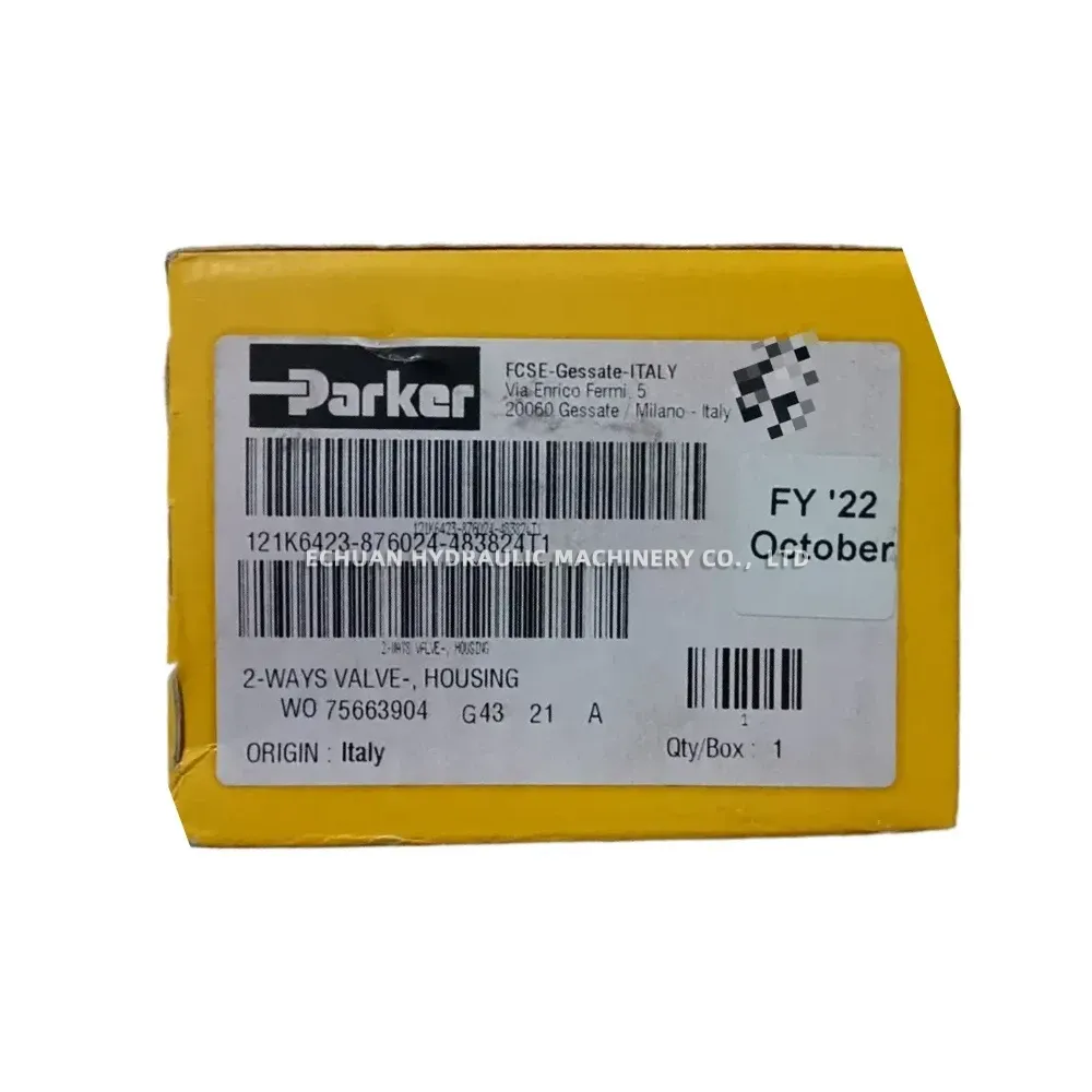 Purchase the genuine Parker 121K6423-876024-483824T1 2-Way Valve Housing. An authentic, high-quality component made in Italy for reliable performance in fluid control systems. Ideal for maintenance and repair.