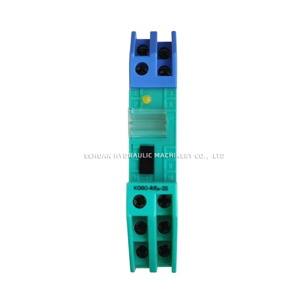 The Pepperl+Fuchs KG30-R/EX-2S is a 2-channel isolated barrier from the K-System, engineered for intrinsic safety applications. This switch amplifier is designed to transfer digital signals, such as those from NAMUR sensors or dry mechanical contacts, from hazardous areas to safe areas. Each channel is equipped with a relay contact output. The device features line fault detection (LFD) to monitor for open or short circuits in the field wiring, ensuring system integrity. With a reversible mode of operation and suitability for applications up to SIL 2 according to IEC 61508, the KG30-R/EX-2S provides a reliable and safe interface for process control systems.