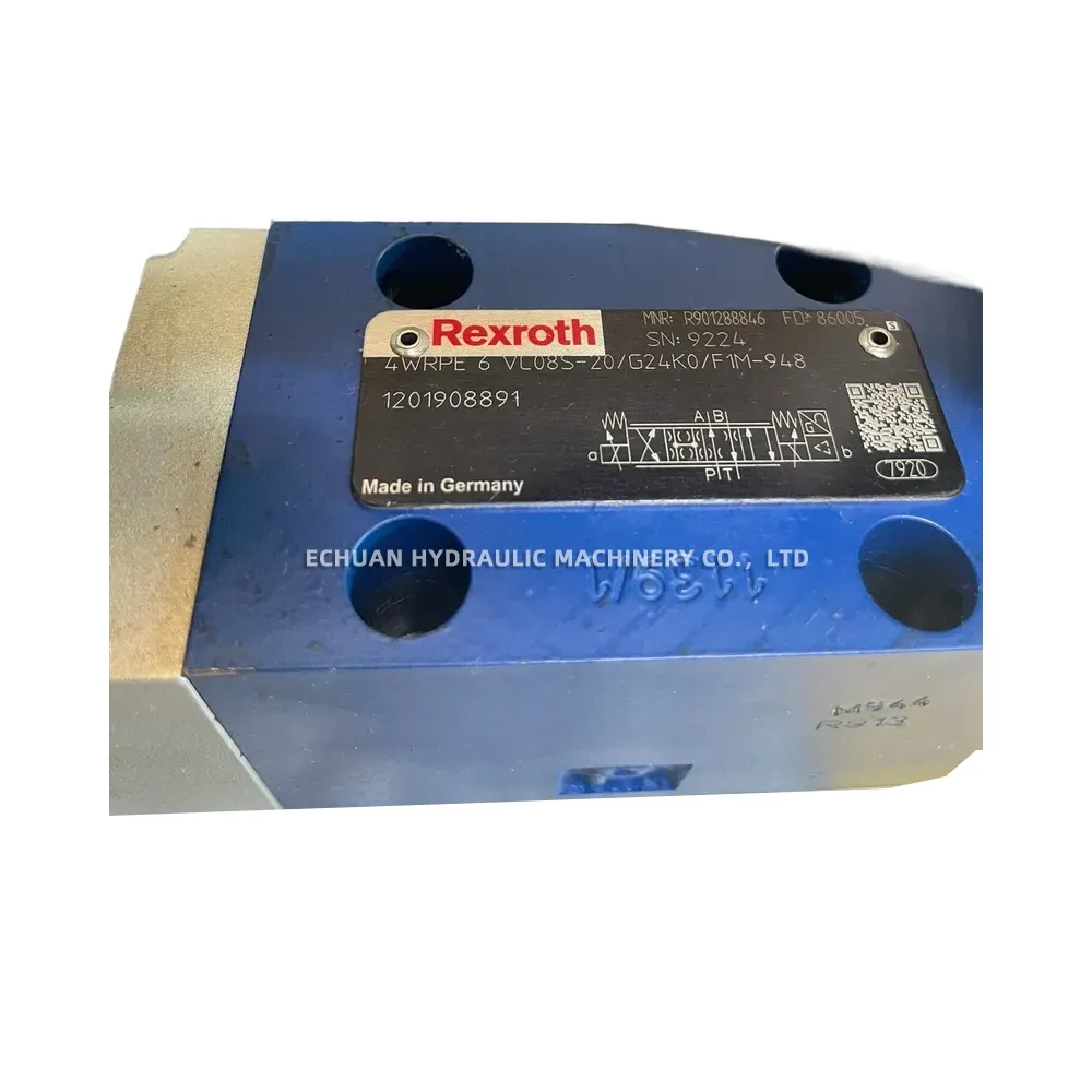 Purchase the genuine Rexroth 4WRPE 6 VL08S-20/G24K0/F1M-948 (R901288846) high-response proportional directional valve. This NG6, 24V DC direct-operated hydraulic valve features integrated electronics (OBE) and position feedback for superior precision in closed-loop control systems.