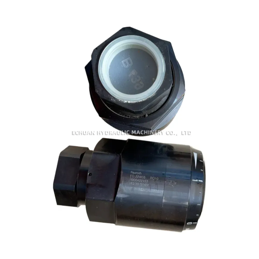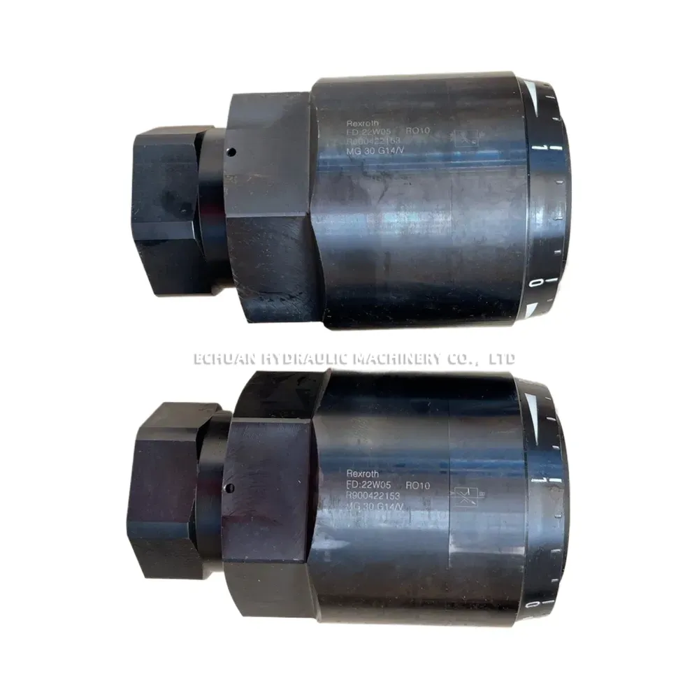 The Rexroth MG 30 G14/V is a robust and reliable manual throttle valve designed for precise control of hydraulic fluid flow rates. As a line-mounted valve, it features a threaded connection for straightforward installation into hydraulic systems. The valve allows for fine adjustment of flow in both directions (meter-in and meter-out control) via a rotary knob, making it ideal for applications requiring accurate speed control of hydraulic actuators. Built with high-quality materials and FKM (Viton) seals, the MG 30 G14/V ensures durability and compatibility with a wide range of hydraulic fluids, even at high pressures and temperatures.