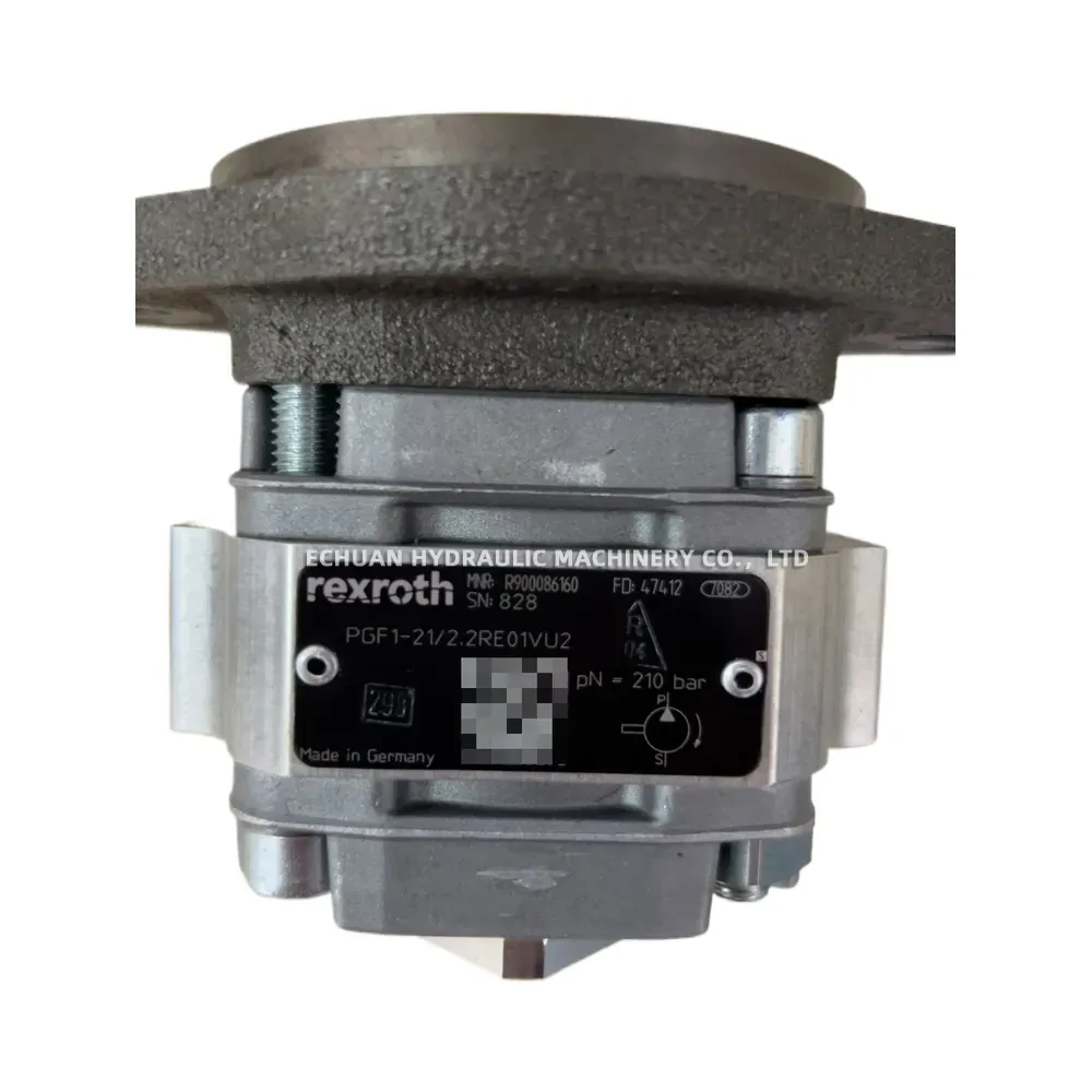 Buy the genuine Rexroth PGF1-21/2.2RE01VU2 hydraulic gear pump (R900086160). A compact, low-noise external gear pump with 2.2 cm³ displacement and 210 bar nominal pressure, ideal for industrial hydraulic applications.