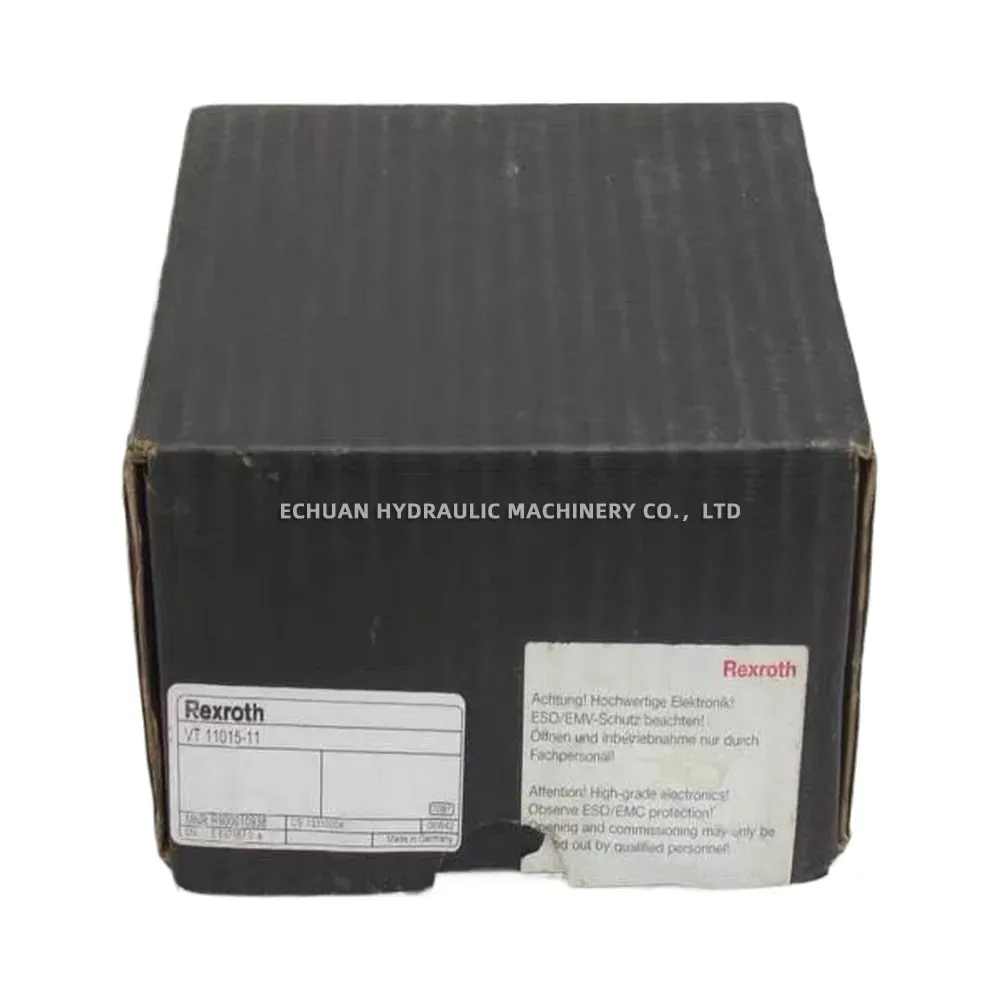 The Rexroth VT 11015-11 is a high-performance analog amplifier card in Eurocard format, specifically engineered for controlling proportional valves without electrical position feedback. It provides precise and reliable command signal processing, featuring a differential amplifier input, an adjustable ramp generator for smooth acceleration and deceleration, and two pulse-width modulated (PWM) output stages. The card includes status LEDs for quick diagnostics and potentiometers for fine-tuning parameters like ramp times and command value attenuation. Its robust design and compliance with ESD/EMC standards make it an ideal solution for demanding industrial hydraulic applications requiring accurate valve control.