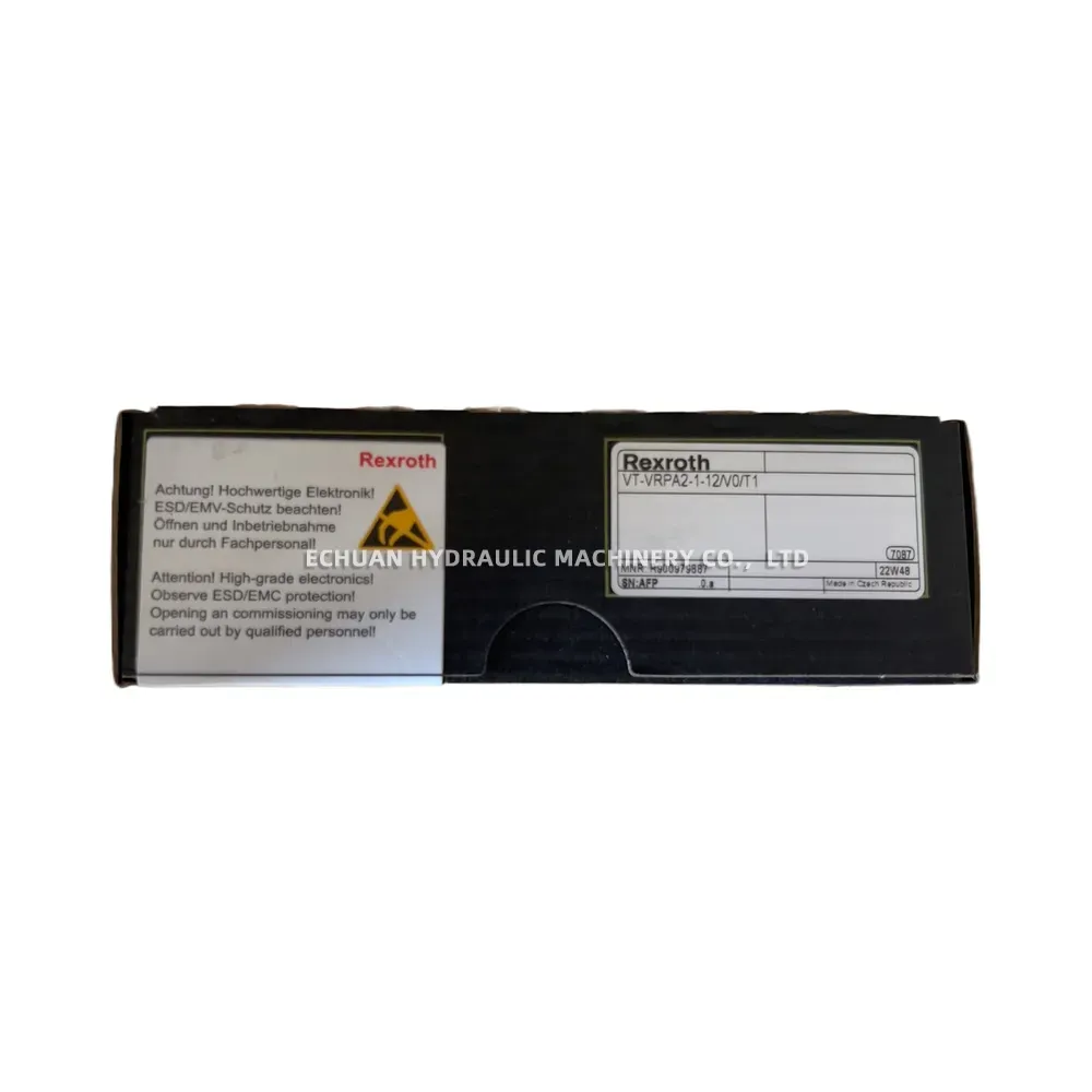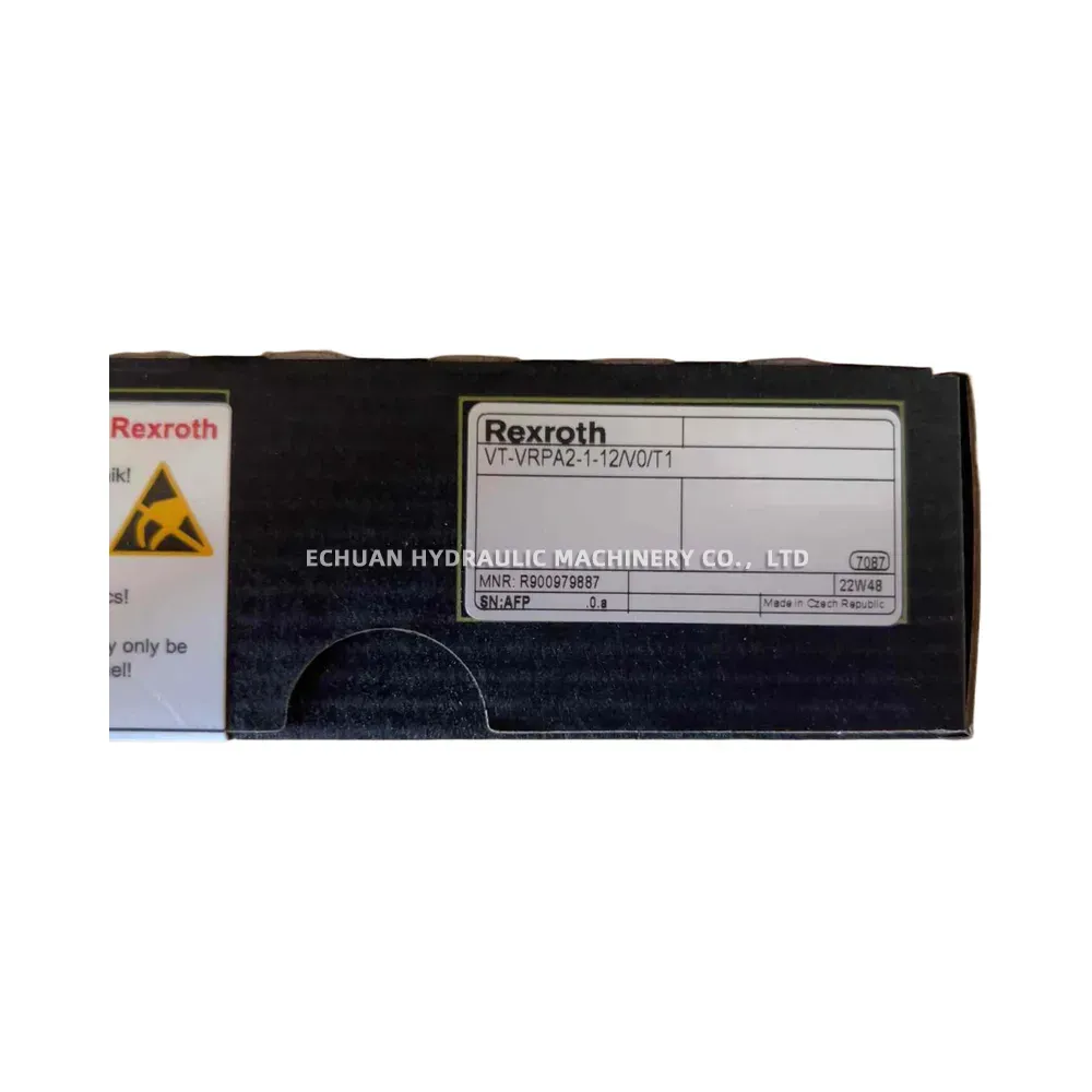 Purchase the genuine Rexroth VT-VRPA2-1-1X/V0/T1 amplifier card (R900979887). This Eurocard-format analog amplifier provides precise control for one proportional solenoid, featuring an integrated ramp function and 1A maximum output current.