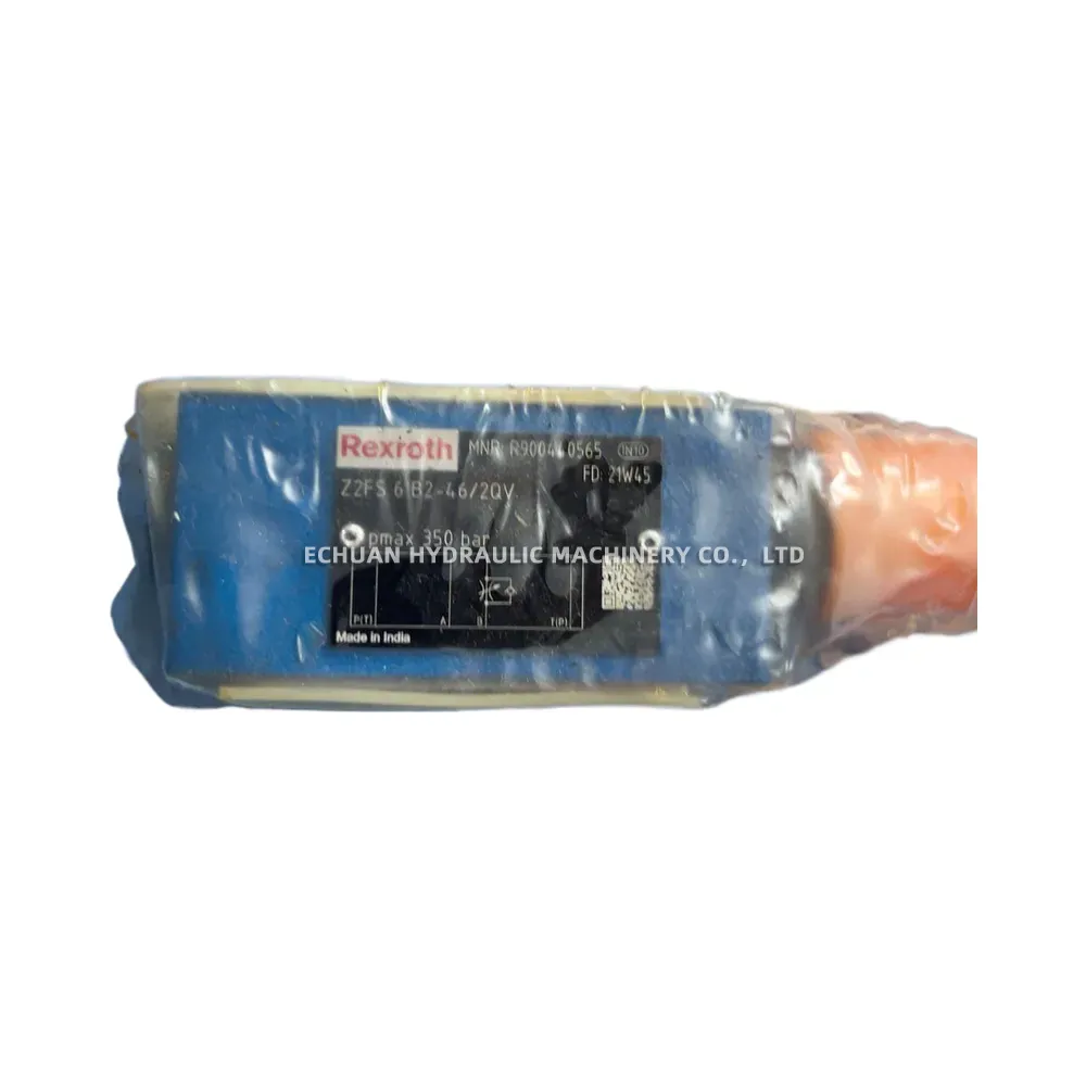 Genuine Rexroth Z2FS 6 B2-4X/2QV pilot-operated check valve (R900440565). NG6 sandwich plate design for reliable hydraulic load-holding and flow control up to 350 bar.