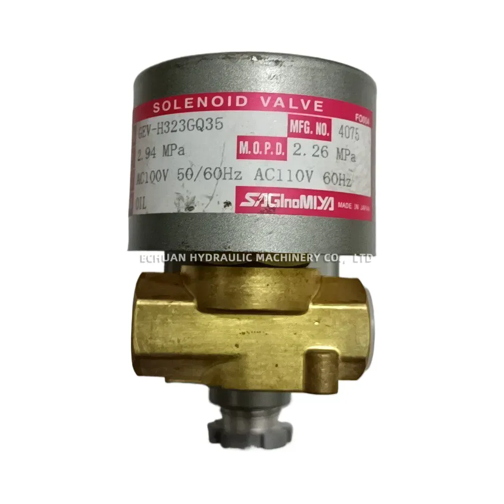 Buy the genuine Saginomiya GEV-H323GQ35 Solenoid Valve. This Normally Closed valve is expertly designed for oil systems, featuring a 2.26 MPa M.O.P.D. and an AC100V/110V coil. Made in Japan for superior reliability.