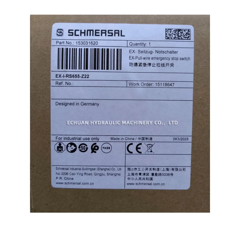 Shop the SCHMERSAL EX-I-RS655-Z22 (Part No. 153031620), a high-performance explosion-proof pull-wire emergency stop switch. Certified for ATEX Zone 22 hazardous dust areas, it offers reliable safety for conveyor systems up to 75m long.