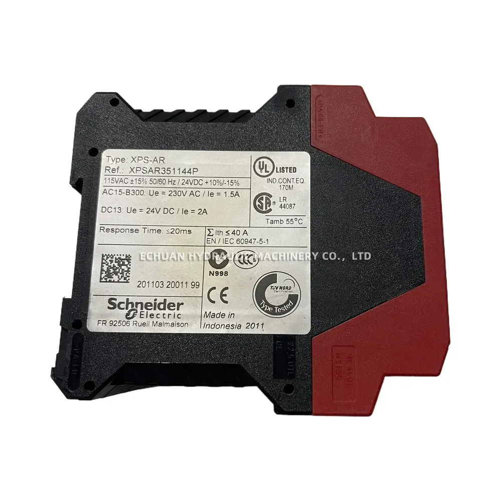 The Schneider Electric XPSAR351144P is a robust safety relay module from the Telemecanique Preventa XPS-AR series, engineered for critical safety applications. It is specifically designed for monitoring emergency stop buttons and safety gates, ensuring the immediate and safe shutdown of machinery in hazardous situations. This module offers flexible power options, supporting both 115V AC and 24V DC supply voltages. With a rapid response time and compliance with major international safety standards like EN/IEC 60947-5-1, UL, and CE, the XPSAR351144P provides a reliable and certified solution for enhancing personnel and equipment protection in industrial environments.
