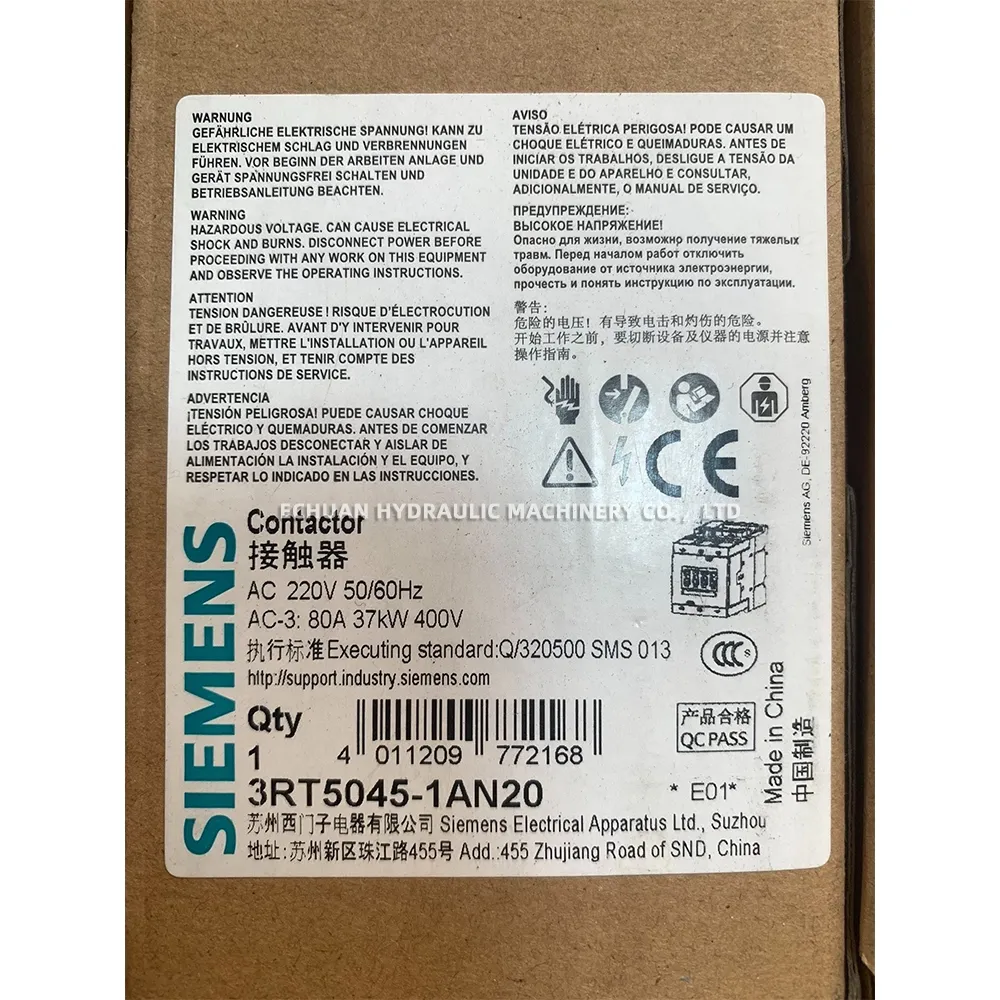 Buy the Siemens 3RT5045-1AN20 SIRIUS Power Contactor, size S3, 3-pole, 80A, 37kW at 400V. Features a 220V AC coil and screw terminals for reliable motor switching applications.