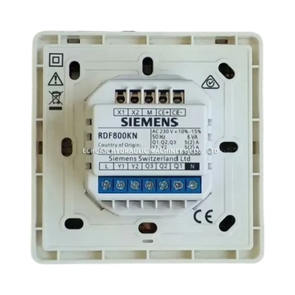 The Siemens RDF800KN is a sophisticated flush-mount room thermostat designed for seamless integration into modern building automation systems via KNX communication. It provides precise temperature control for a wide range of applications, including 2-pipe and 4-pipe fan coil units, as well as chilled and heated ceilings. Featuring a large, easy-to-read backlit LCD, the RDF800KN displays the current room temperature, setpoint, and operating mode. It supports multiple control outputs (On/Off, PWM, 3-position) and includes a multifunctional input for enhanced flexibility, such as connecting a keycard contact or an external sensor. With its sleek design and advanced functionality, including Comfort, Economy, and Protection modes, the RDF800KN is an ideal solution for optimizing comfort and energy efficiency in commercial and residential buildings.