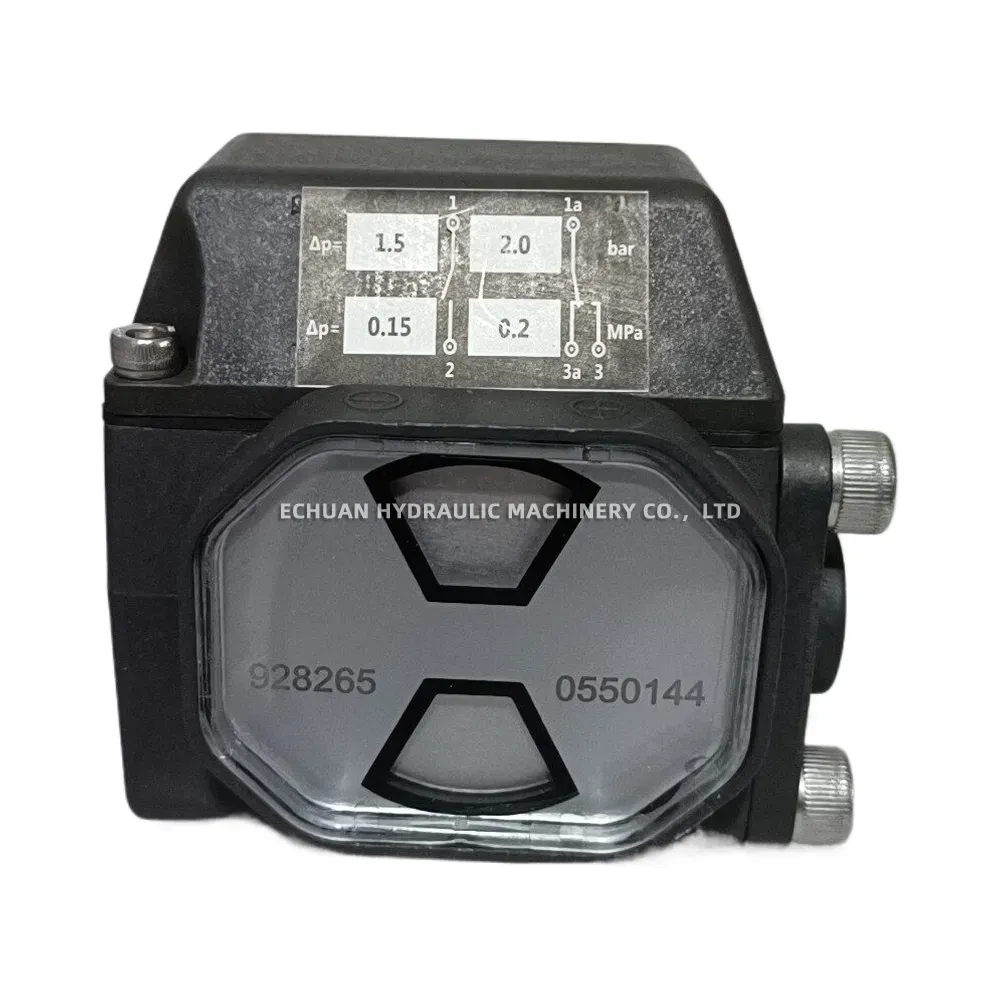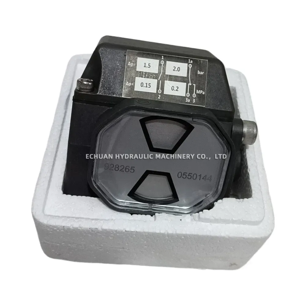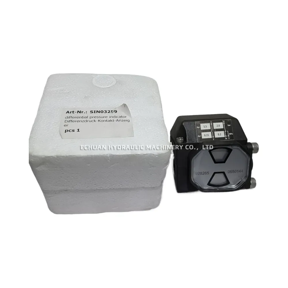 Shop the SIN03259 industrial differential pressure indicator for reliable filter monitoring. Features selectable 1.5 bar and 2.0 bar switching pressures with an integrated electrical contact for hydraulic systems.