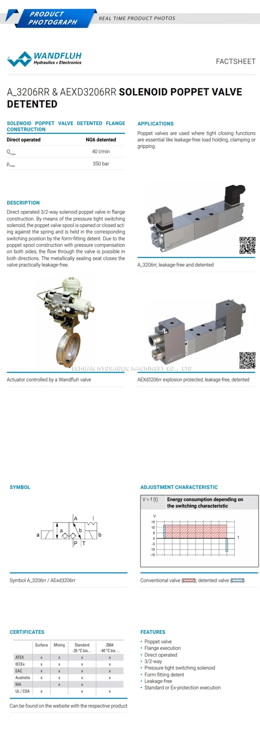 The WANDFLUH AS3206RR-HN is a high-performance, direct-operated proportional spool valve designed for precise control of hydraulic flow and direction. As a 4/3-way valve with a standard NG6 (CETOP 3) mounting interface, it integrates seamlessly into a wide range of hydraulic systems. The valve’s output flow is directly proportional to the electrical input signal applied to its dual solenoids, enabling fine and repeatable control of actuators. Manufactured with Swiss precision, the AS3206RR-HN is known for its excellent dynamics, low hysteresis, and robust construction, making it ideal for demanding applications in industrial machinery, mobile equipment, and automation where accurate motion control is critical.